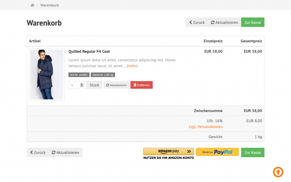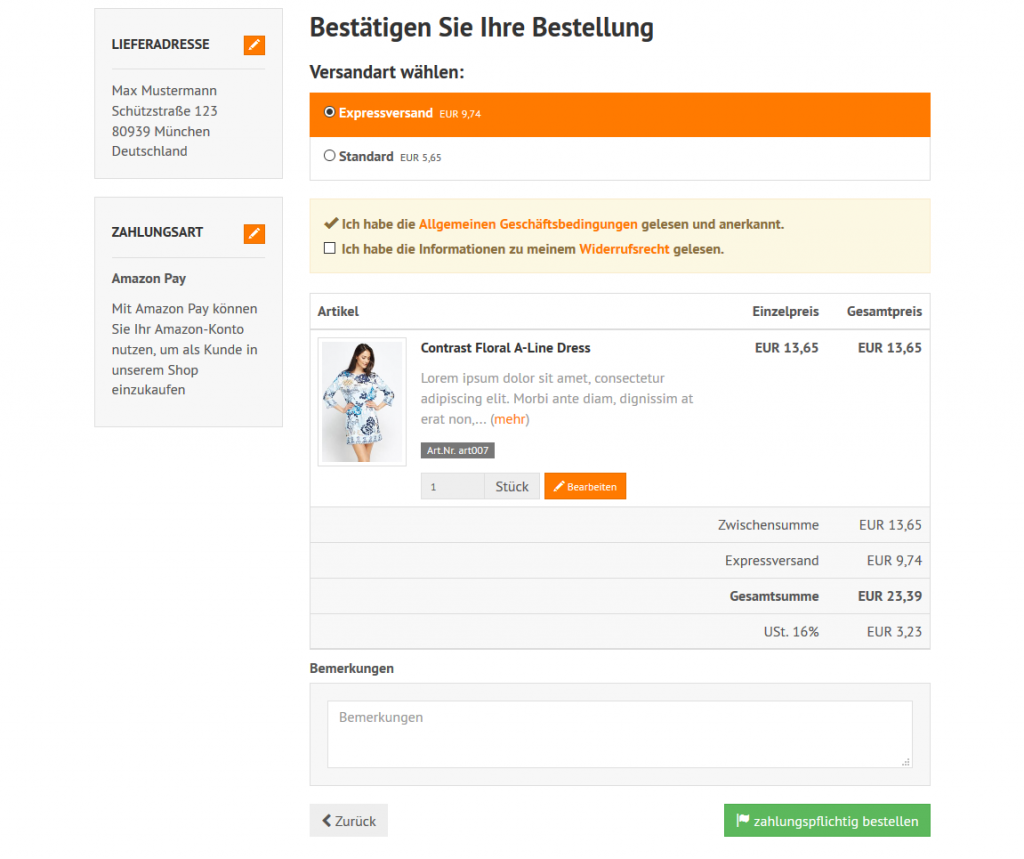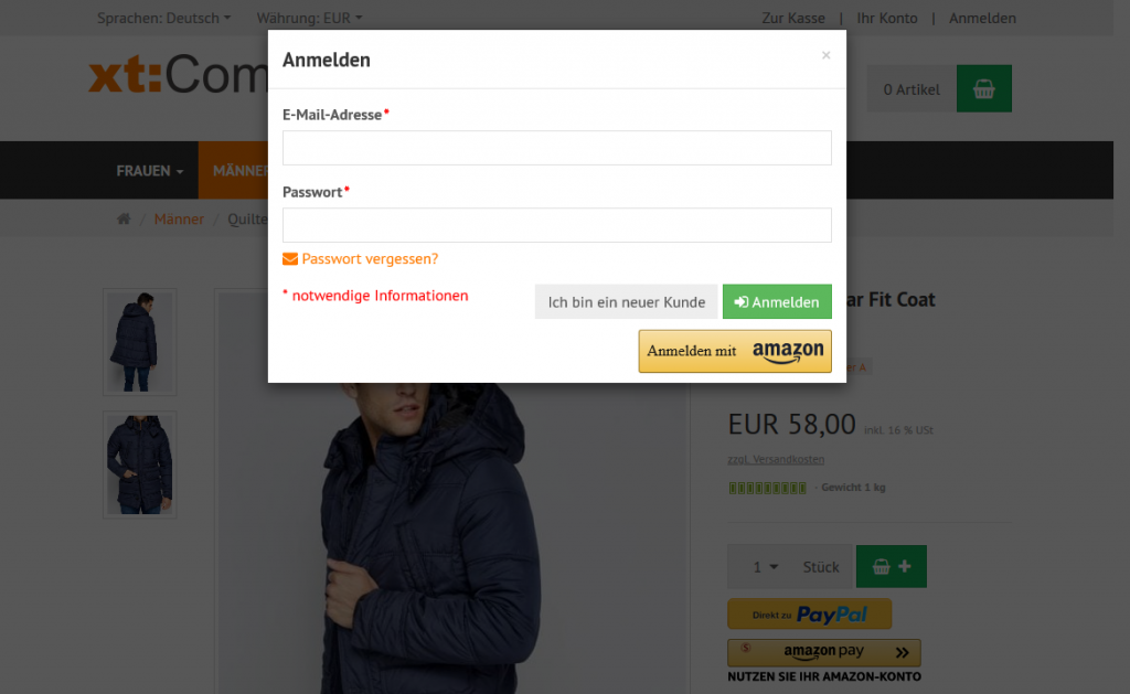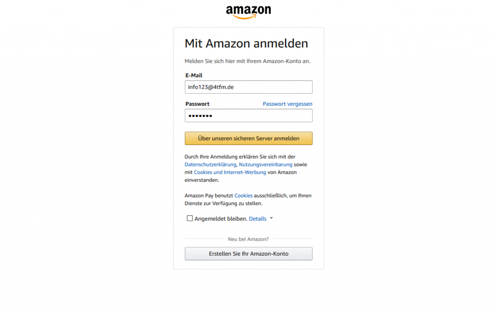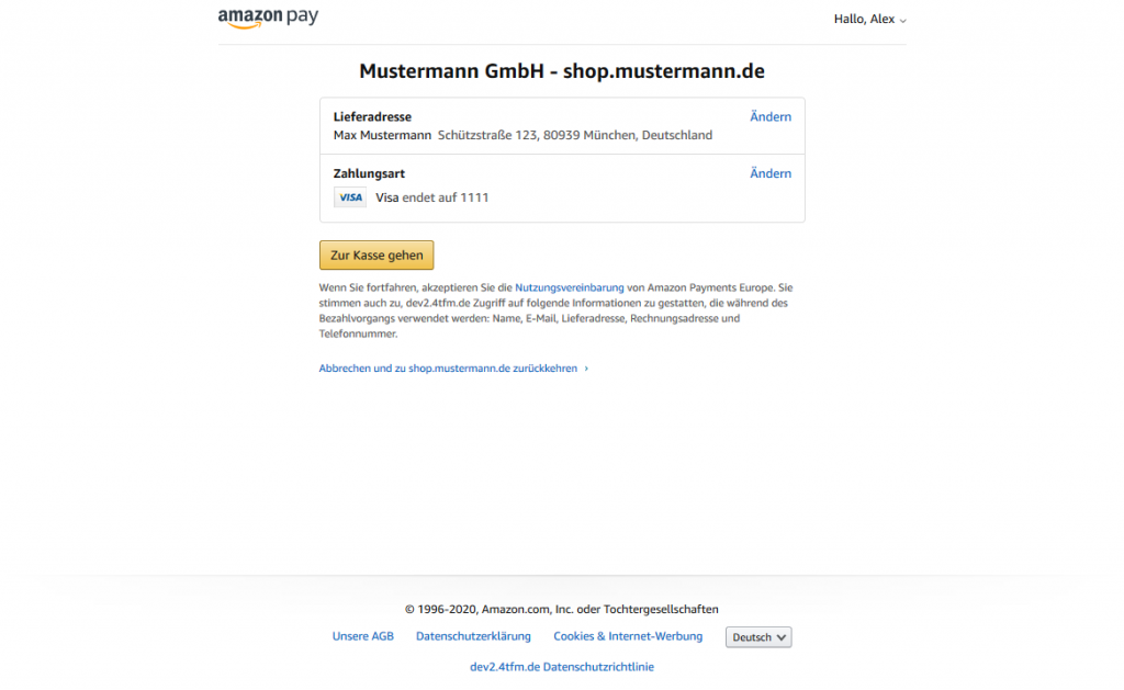 - Kunden können sich mit Ihrem Amazon-Konto im Shop anmelden und die Zahlung mit den im Amazon-Konto hinterlegten Zahlungsarten durchführen