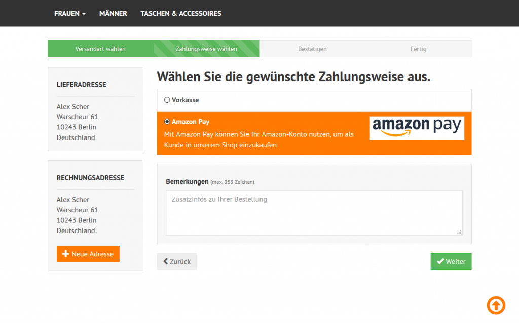 - Die Adressen aus dem Amazon-Konto können bequem als Versandadressen ausgewählt werden