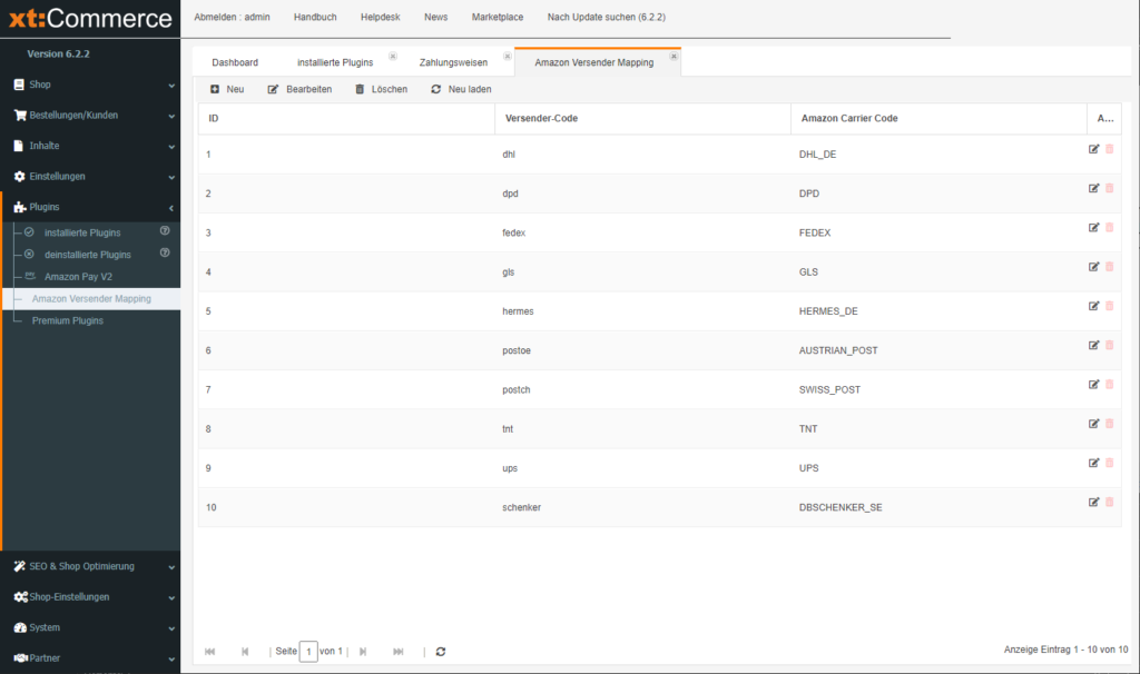 Öffnen Sie im Administrationsbereich Ihres Shops die Seite Plugins > Amazon Versender Mapping.