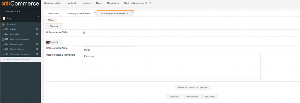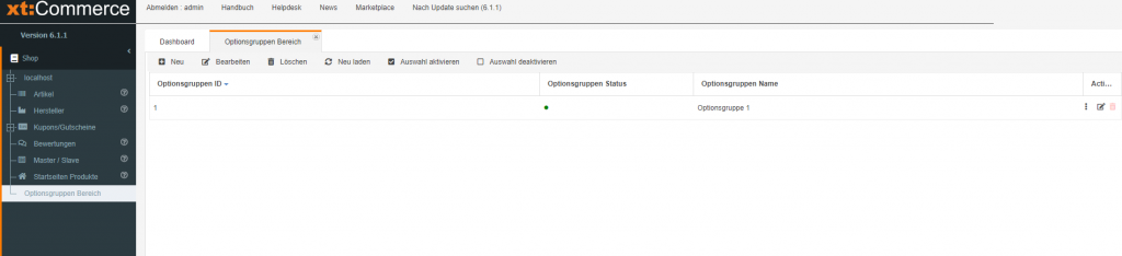 Dort können Sie über den Klick auf “neu”, eine neue Optionsgruppe anlegen oder vorhandene Gruppen bearbeiten.