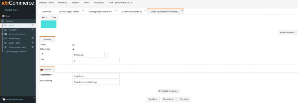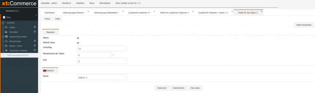 Ändern Sie die Optionen innerhalb einer Optionsgruppe, so wird bei allen Produkten, wo die Optionsgruppe hinzugefügt ist, die Anpassung übernommen.