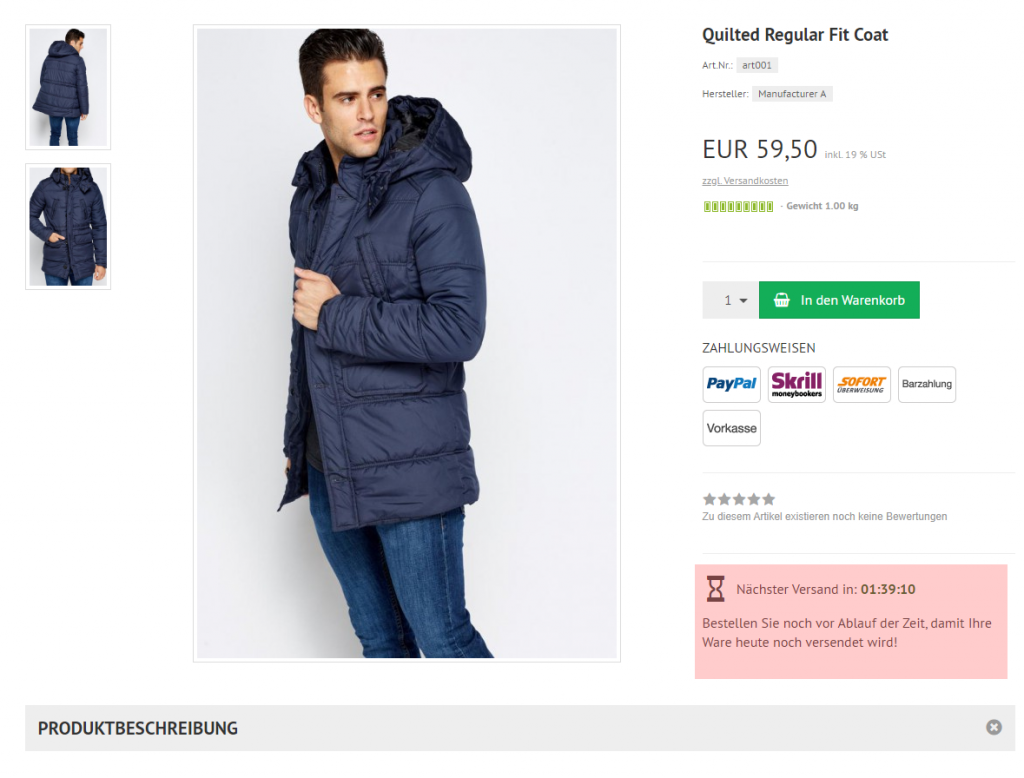 Mithilfe der Blacklistfunktion kann beispielsweise an Feiertagen der Countdown zum Versand einfach ausgestellt werden. Ebenso haben Sie die Möglichkeit bei jedem Produkt selbst zu entscheiden, ob ein Countdown angezeigt werden soll.