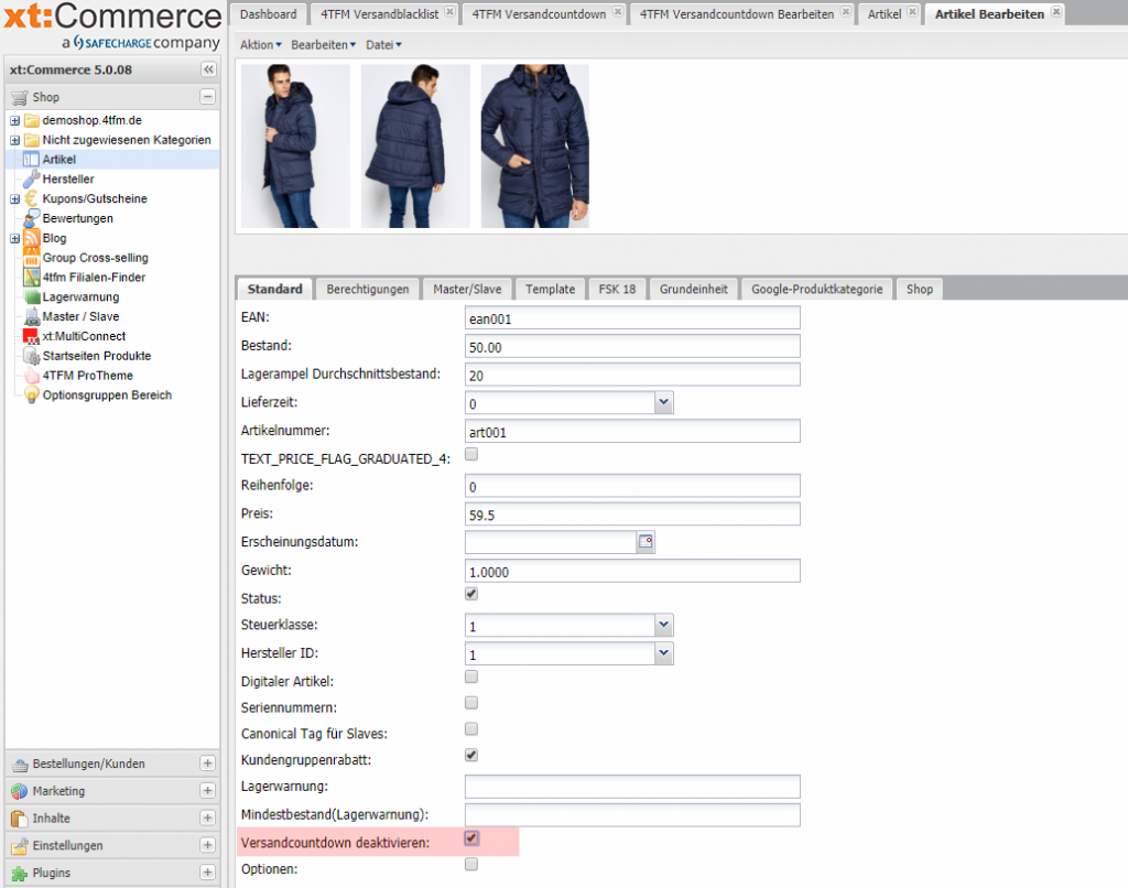 - das xt:Commerce Plugin “tfm_shipping_countdown” in Ihrem Shop installiert & aktiviert sein.