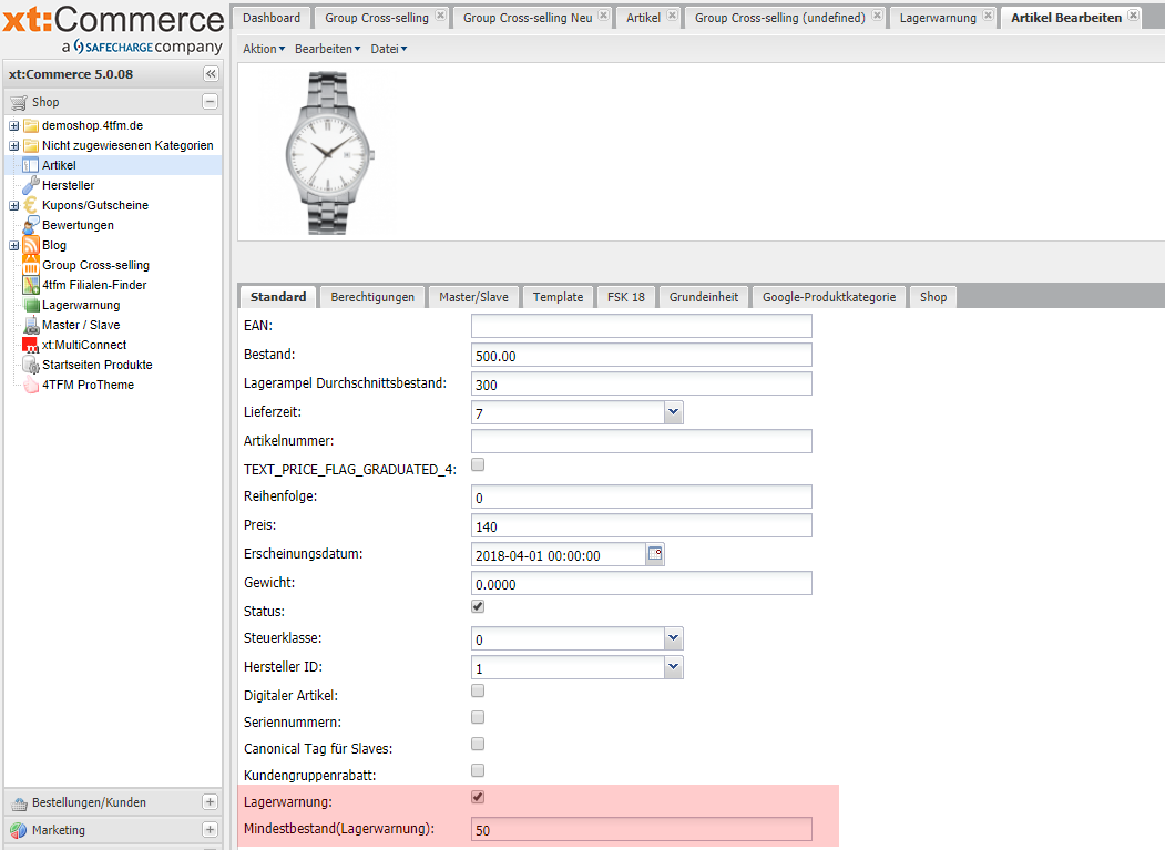 Das Plugin tfm_stock_warning informiert Sie rechtzeitig wenn der Lagerbestand von einem Produkt in Ihrem Shop unterschritten wird:
