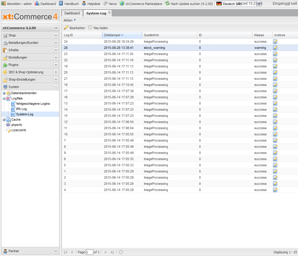 Prüfen Sie den Systemlog. (Immer wenn eine Lagerwarnung ausgelöst wird, sollten Sie hier einen Eintrag finden. Ist hier kein Eintrag, dann prüfen Sie die Konfiguration des Plugins. Ist hier ein Eintrag prüfen Sie die Mail-Konfiguration.)