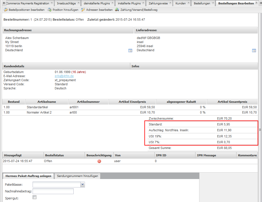 Screenshots aus xt:Commerce 4.1.10, jedoch wurde das Plugin bereits für xt:Commerce 4.2.00 und 5.x.x von und aktualisiert.