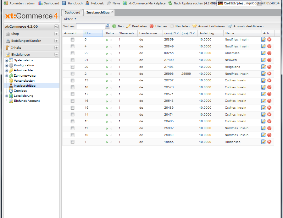 Bei der Installation des Plugins wurden bereits die Zuschlagspflichtigen Inseln und Regionen für Deutschland (von DPD) in Ihren Shop geladen. Lediglich die Kosten für diese Regionen müssen Sie in der Inselzuschlags-Konfiguration hinterlegen.