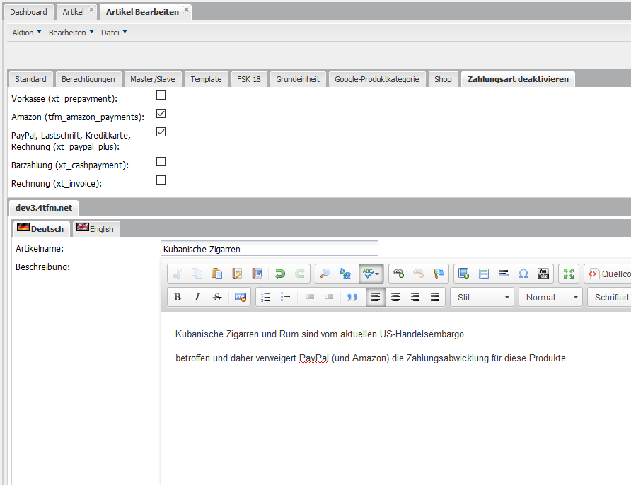 Das Plugin “tfm_payment_disable” erlaubt Ihnen, die bestimmte Zahlungsarten für bestimmte Produkte in Ihrem xt:Commerce Shop zu deaktivieren.
